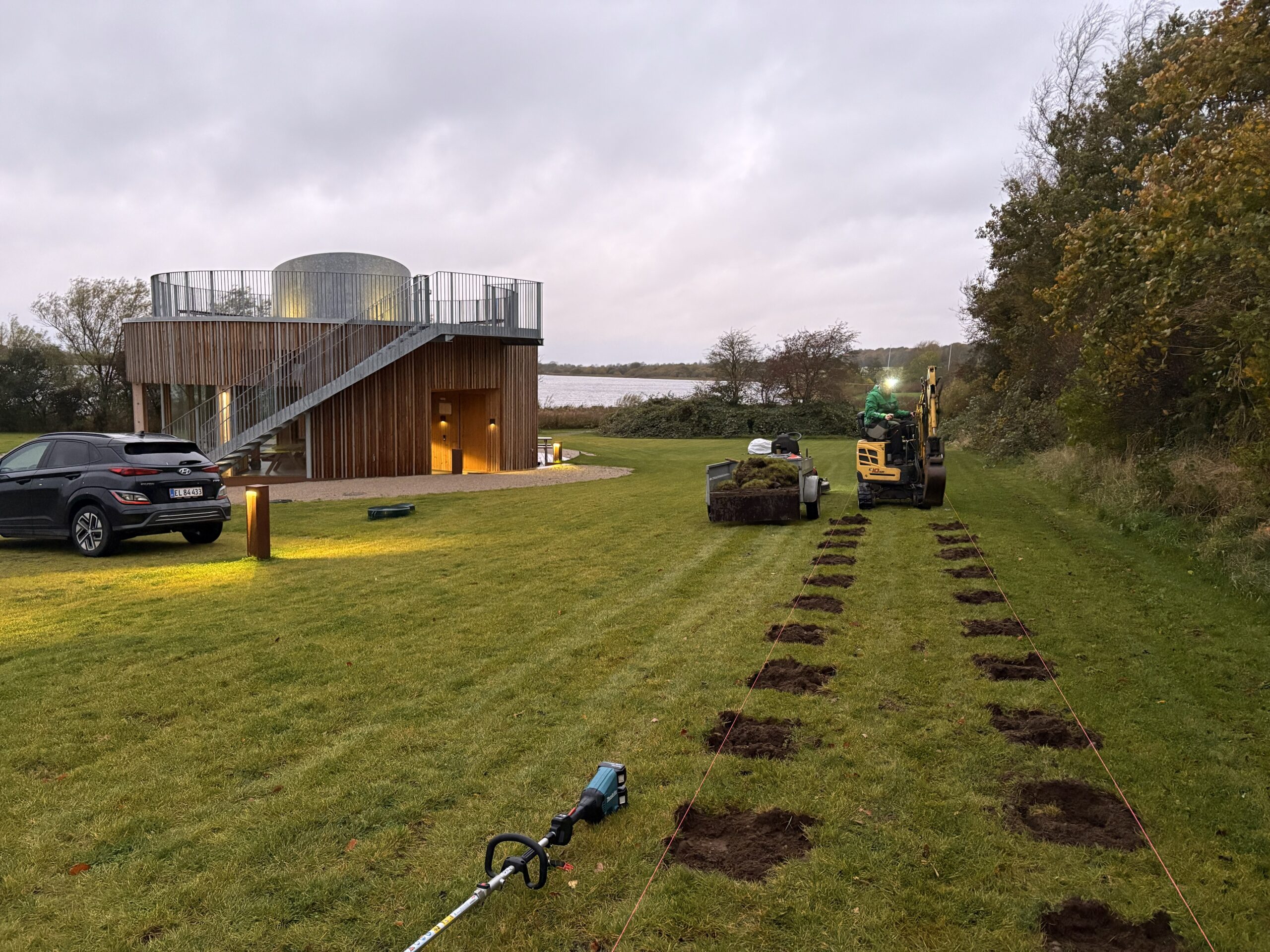 126 syrener kom i jorden toppet med flis på en regnfuld oktoberdag.